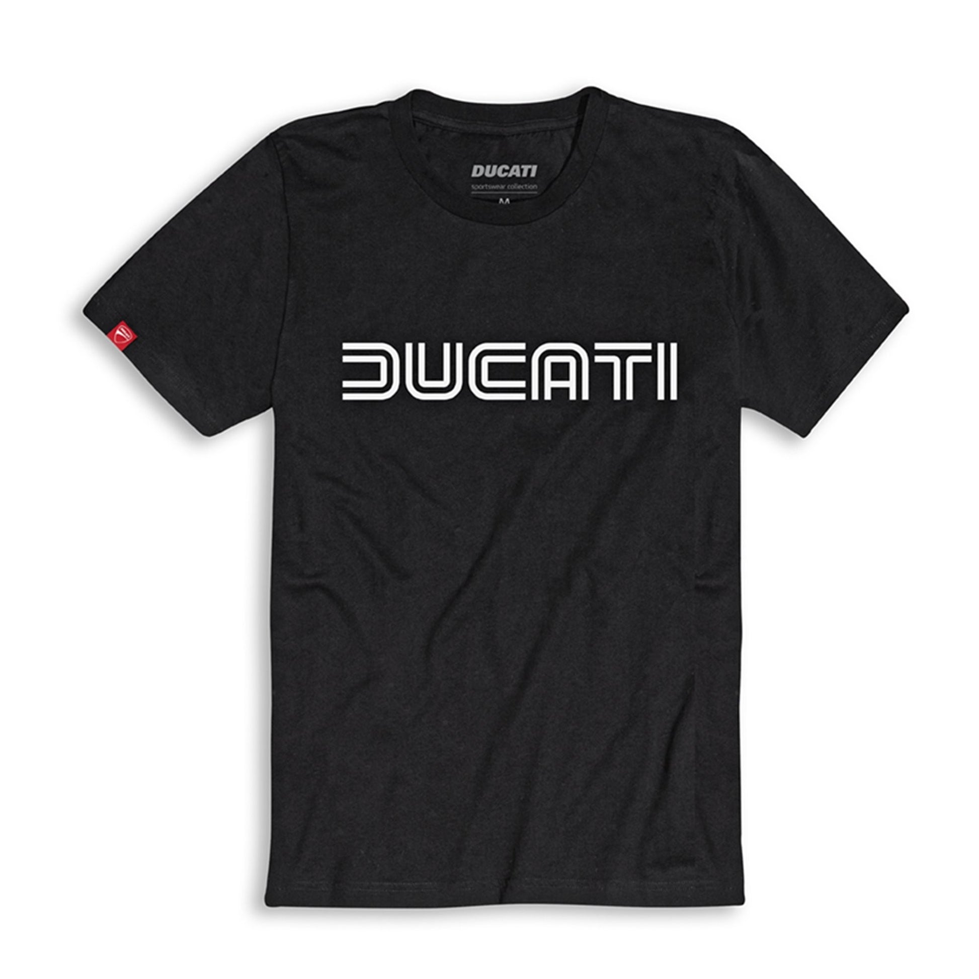 Exclusive T-shirt featuring the legendary logo created by the hand of designer Giorgetto Giugiaro. Optimum comfort thanks to the specific softening and anti-shrink treatments, which give it dimensional stability during washing and use. The historic logo printed in the center stands out against the unmistakable Ducati red. A garment for true Ducatistas.