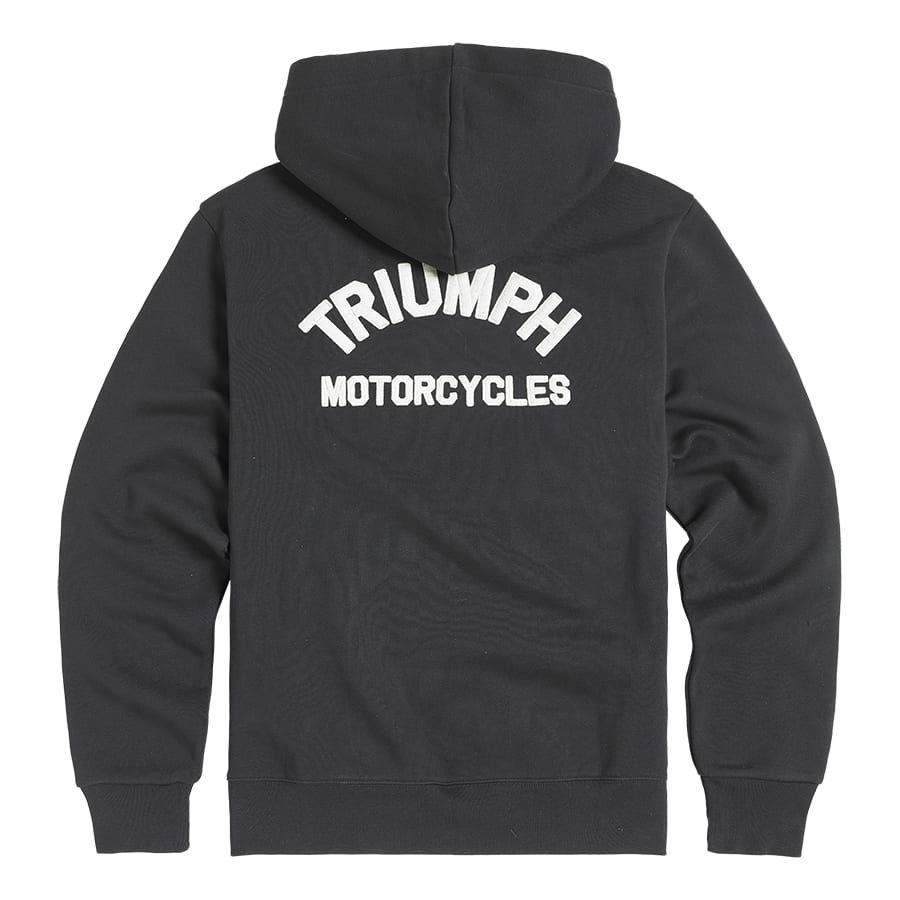 Zip up the Dolan Hoodie. Featuring our classic arched Triumph Motorcycles lettering, full length front zip, double kangaroo pockets, hood drawstring and constructed in 100% cotton 320gsm. Disclaimer: This product does not include body armour. Casual and Heritage wear does not provide the same protection as Riderwear.