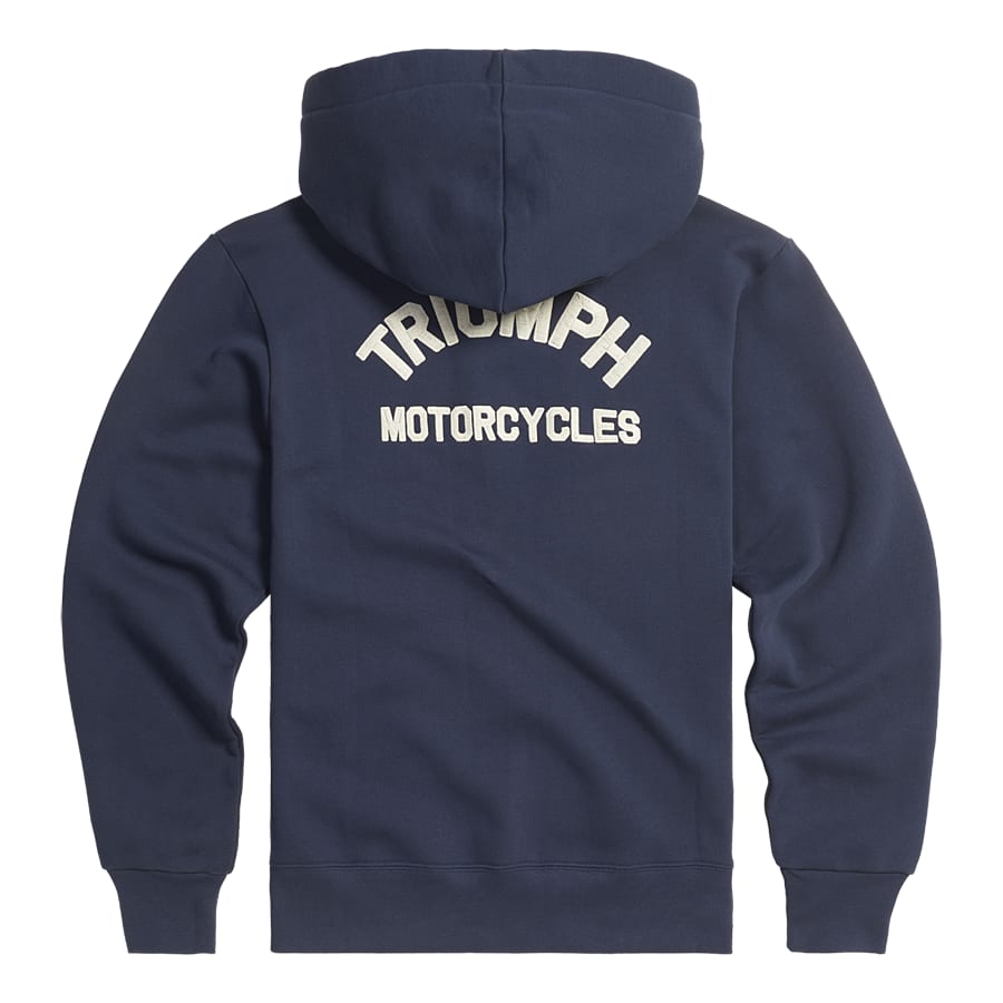 Zip up the Dolan Hoodie. Featuring our classic arched Triumph Motorcycles lettering, full length front zip, double kangaroo pockets, hood drawstring and constructed in 100% cotton 320gsm. Disclaimer: This product does not include body armour. Casual and Heritage wear does not provide the same protection as Riderwear.