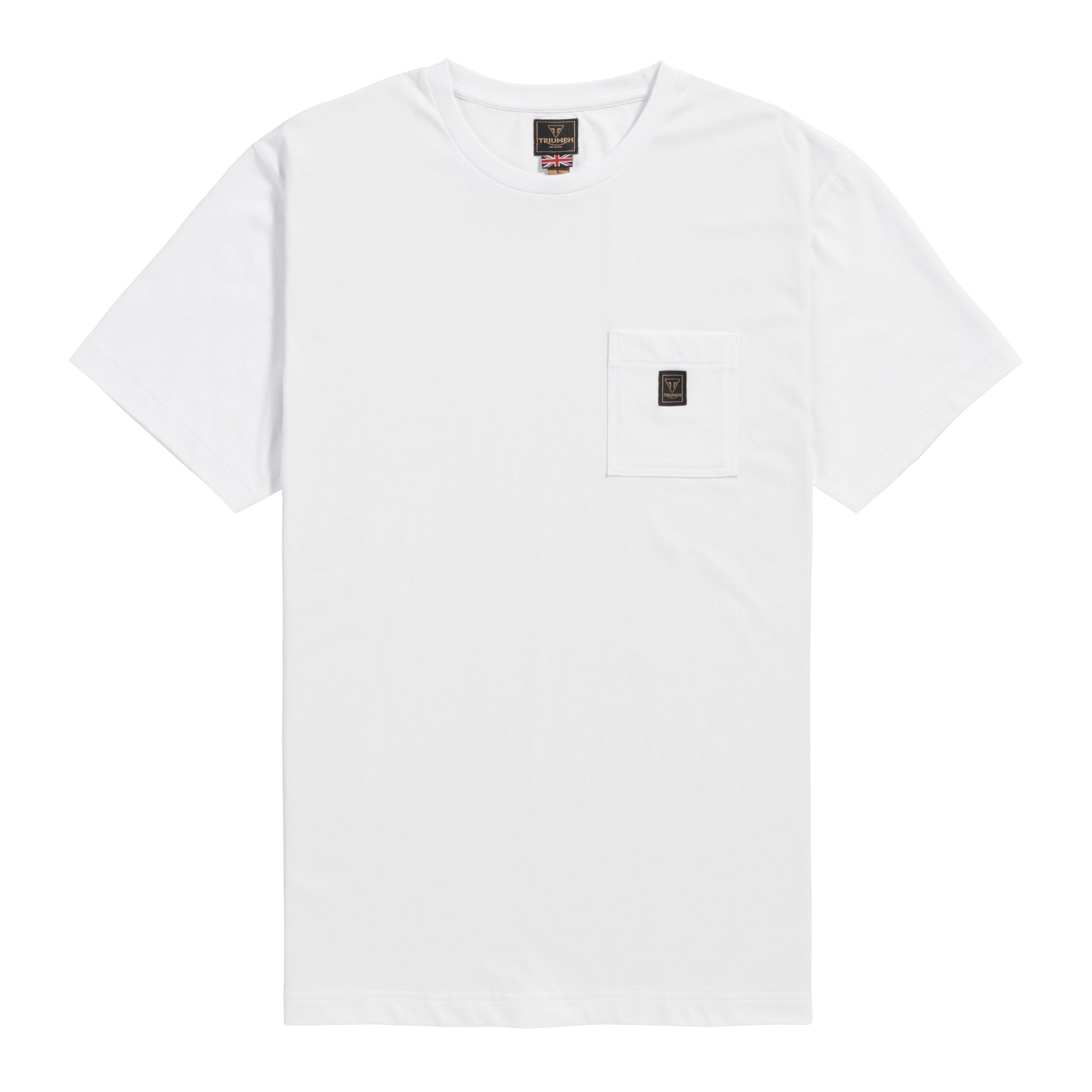 The Triumph New Boots Tee in White. A clean cotton t-shirt with a motorcycle boot-inspired graphic print. Comfortable fit with quality construction from the Modern Classics casual collection.