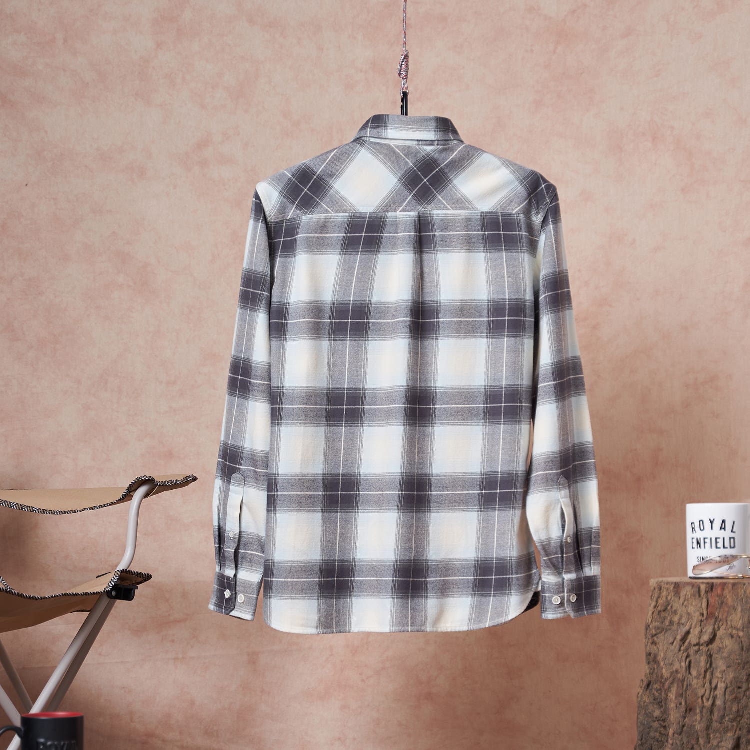 Ride in style with the Royal Enfield Heavy Weight Flannel Shirt. The shirt features light grey checks on a pure cotton twill fabric. It has a patch pocket on the front with the Royal Enfield logo. In addition, the shirt has a button-down collar and shaped yolk to provide movement space.